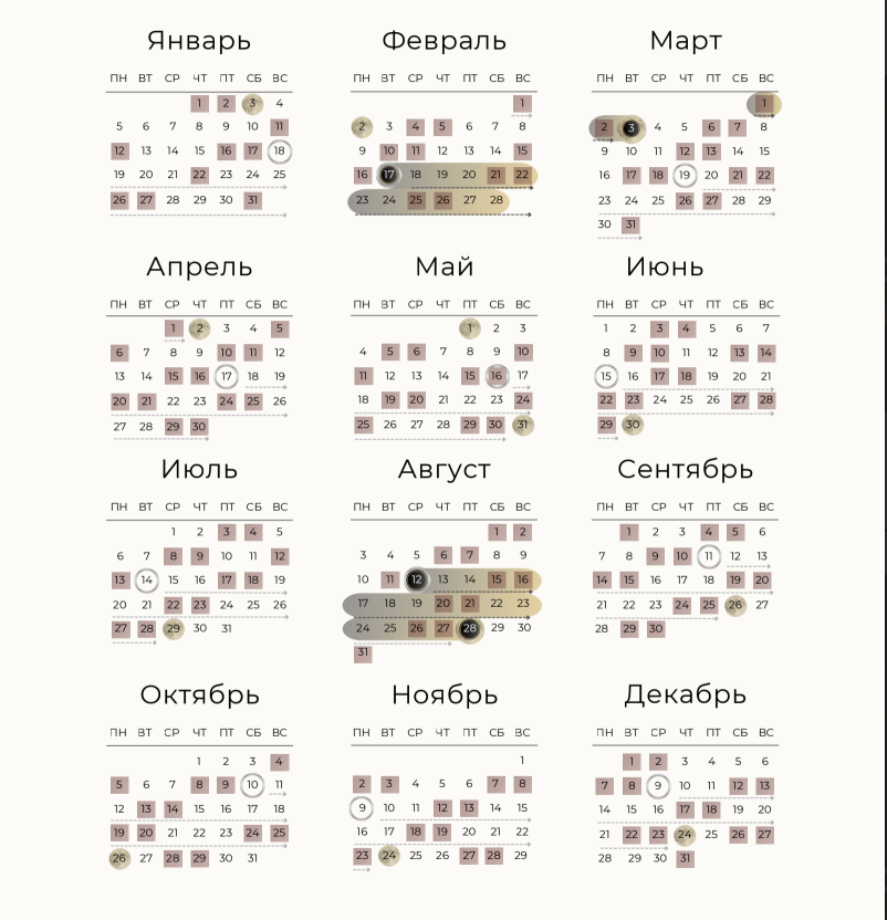 | О календаре Встретьте 2026 год во всеоружии спокойствия и уверенности. Ваш персональный астрологический календарь — это не просто даты. Это готовый план на год, который позволяет расслабиться, положиться на ритмы планет и точно знать свои лучшие дни для действий. Мы уже выделили для вас все важные даты: когда планировать поездки, подписывать договоры, делать крупные покупки, сосредоточиться на отношениях или работе. Вам остаётся только открыть нужную страницу. Подарите себе на Новый год главный подарок — уверенность и готовность ко всем возможностям. |
